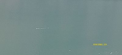 He siad "As I took photos I noticed movement in the water as something that surpassed 30 feet long slithered with a serpent like movement and appeared whitish grey with some type of horn or ball on its head, for a moment I noticed a darker larger body as it were beneath the surface but could not capture in photo, one photo zoomed in you can almost see a head like head.