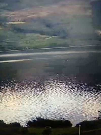 2 smaller black shapes appeared, close together and I caught this odd looking image on a screenshot (below).I did not see any boats, at the time of sighting. There seemed to be a lot of action on the water around the object even though it moved slowly."