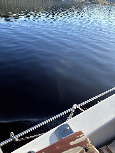 27 August 2023 - at 11.26am on the 27th of August, Siobhan Janaway, who lives locally, reported "There was something causing turmoil in the water off Foyers point then it coalesced into a single object moving at speed just under the surface causing at least a 20m white wake" She confirmed that there were no boats near the location. She took this photo of what she saw: